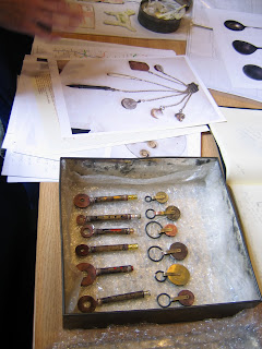 My session encouraged seminar participants to engage in some creative activity around the Mary Greg project. Liz gave an enthusiastic introduction using the display in the Object Memories Showcase, in the Craft and Design Gallery and whetted everyone’s appetite for the session. The Mary Greg chatelaine was used as a starting point for creative response.