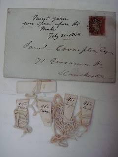 This project has taken me down lots of fantastic new avenues of exploration, but when it comes down to it I still find myself inspired by the small, banal looking objects in the collection, which on the surface look unimportant and yet hold so much history. The Samuel Crompton threads being the most excting for me, especially as it was Sharon and I who discovered them nestled in the pile of letters sent from Mary Greg to Mr Batho. How can such a small piece of thread have such a strong presence? It makes you feel as if you are touching the beginings of the industrial revoloution (or am I being too romantic!).My favourite exhibit at the War Museum North is the small piece of wire from a zeppelin which was sold attached to a crude pin and sold to raise money for the war effort..owning a small piece of something so immense is owning a small piece of history. My love of string isn’t a secret..I think it all dates back to being a Brownie and having to have a piece of string in your pocket for emergencies (I never did have a suitable emergency to use it)..I still collect party popper string from significant events too.